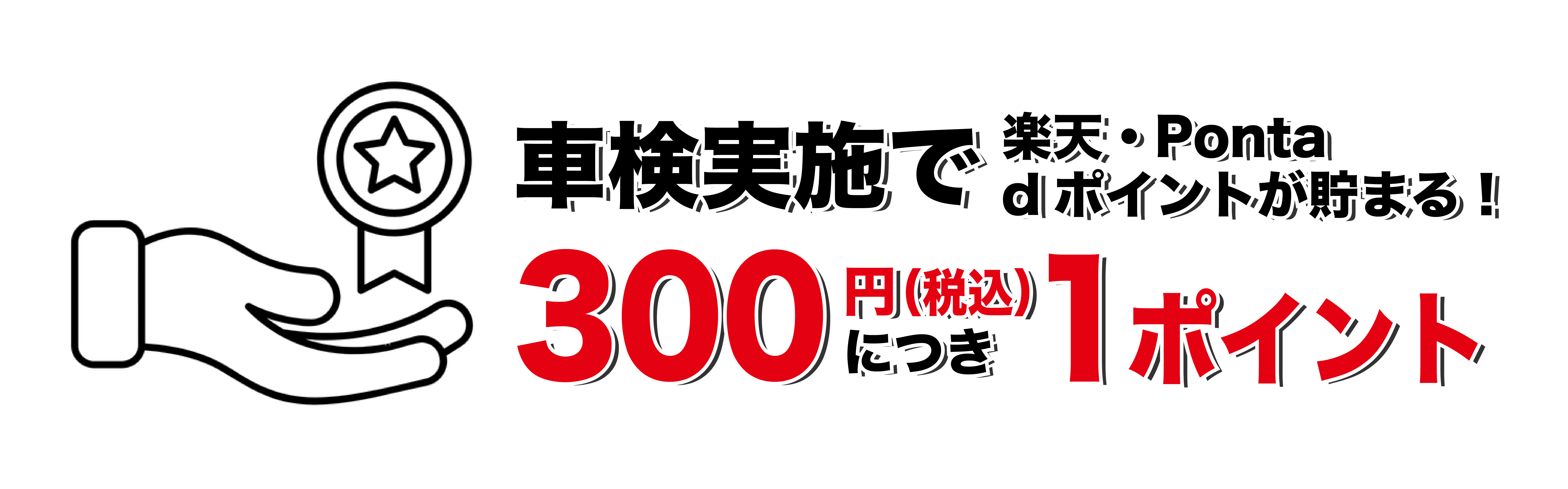 車検実施で300円(税込)につき1ポイント貯まります。