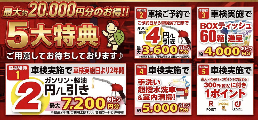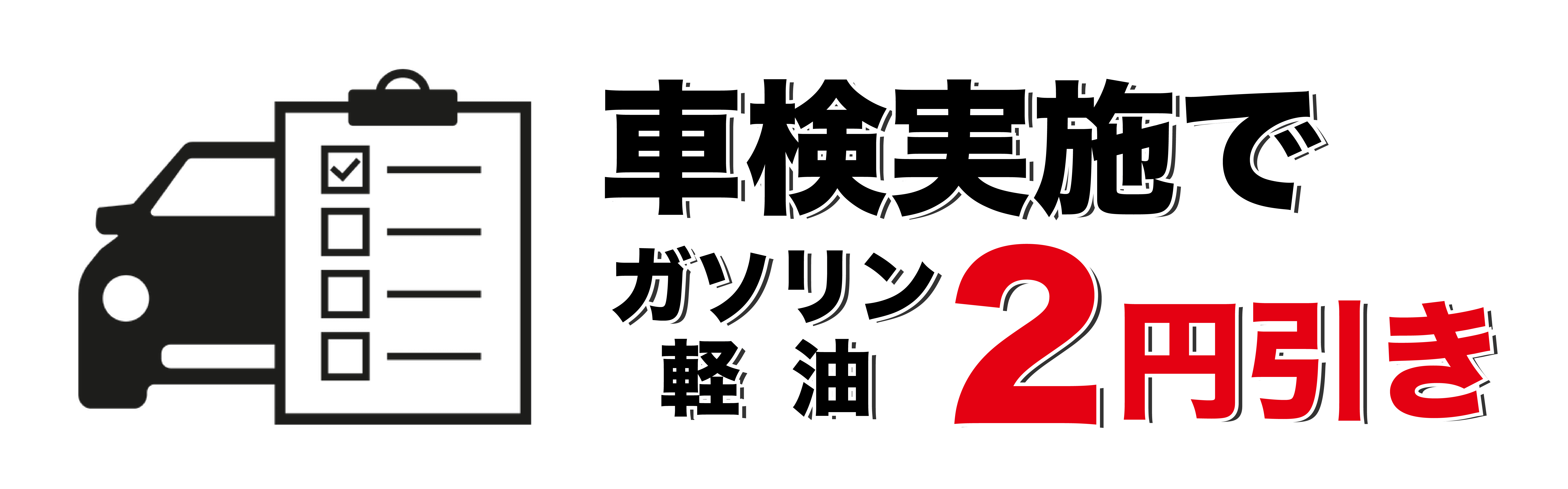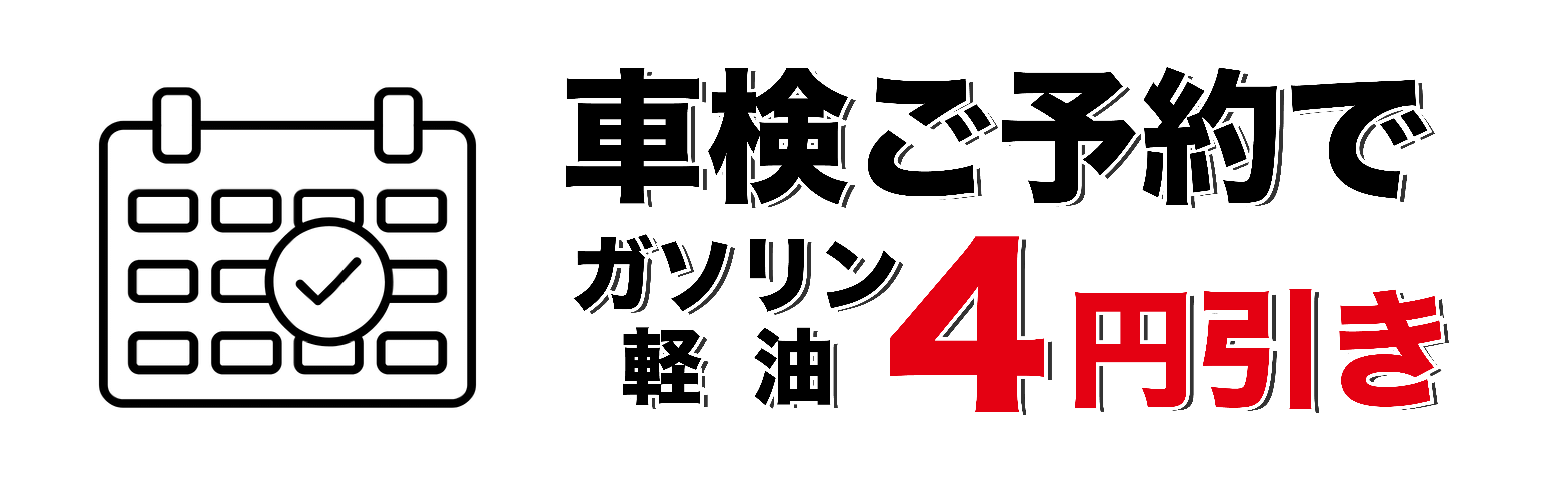 車検ご予約でガソリン・軽油が4円引きになります。