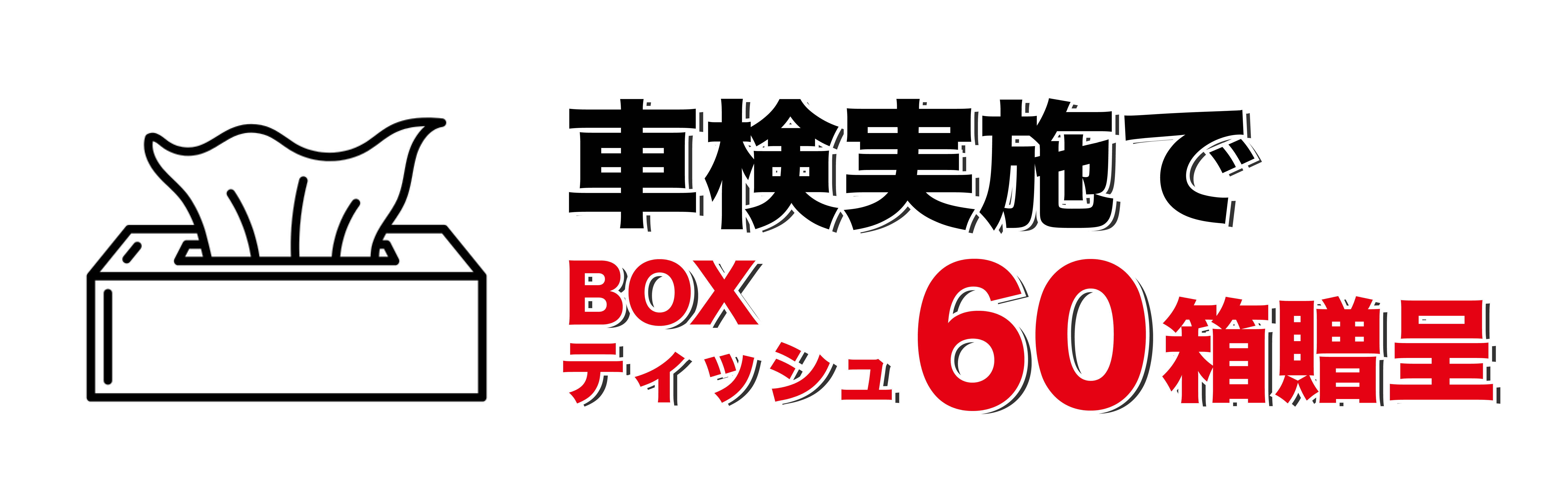 車検実施でBOXティッシュ60箱を贈呈します。