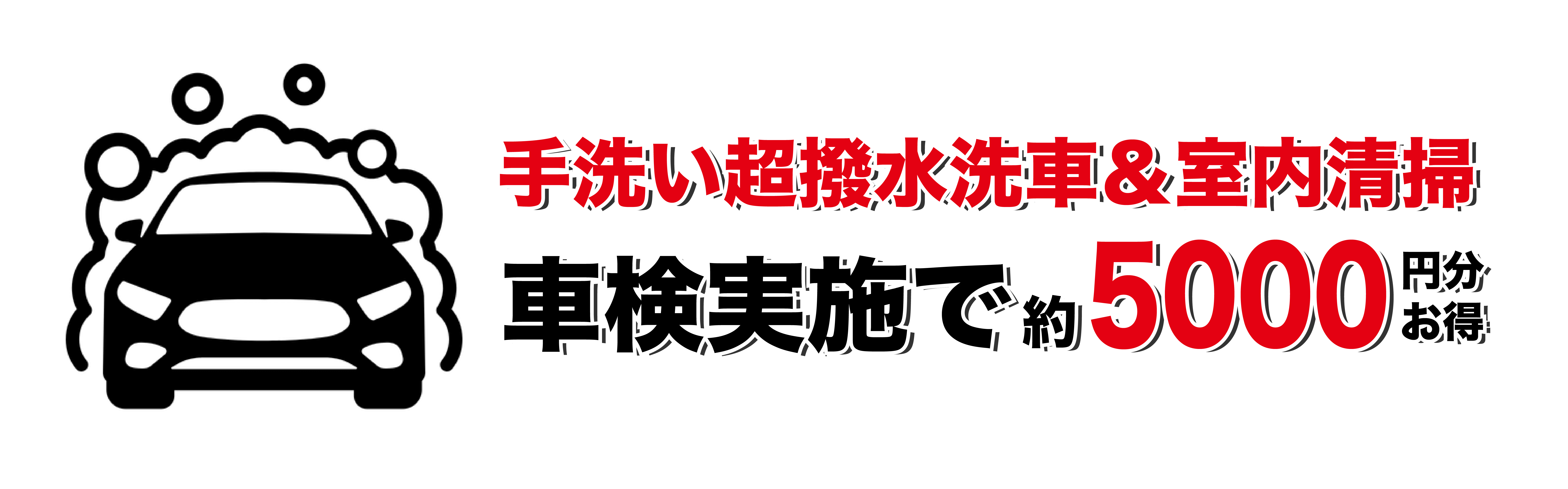 車検実施で約5,000円分おトクの手洗い超撥水洗車&室内清掃。
